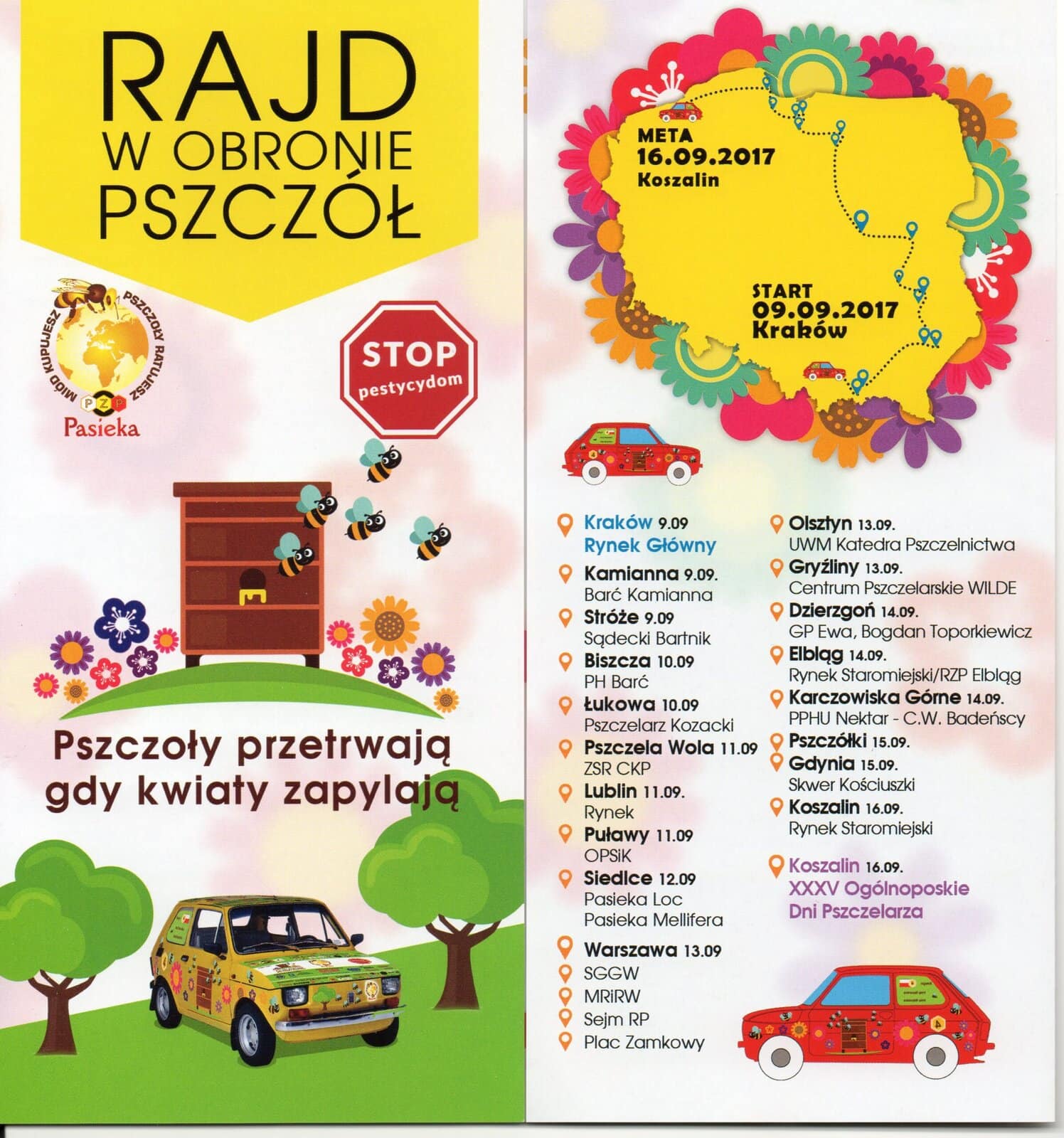 W dniu 15.09.2017, w godzinach 10:00 -11:00 „Rajd w obronie pszczół” zawita do  Pszczółek, gdzie uczestnicy rajdu spotkają się z młodzieżą oraz mieszkańcami.