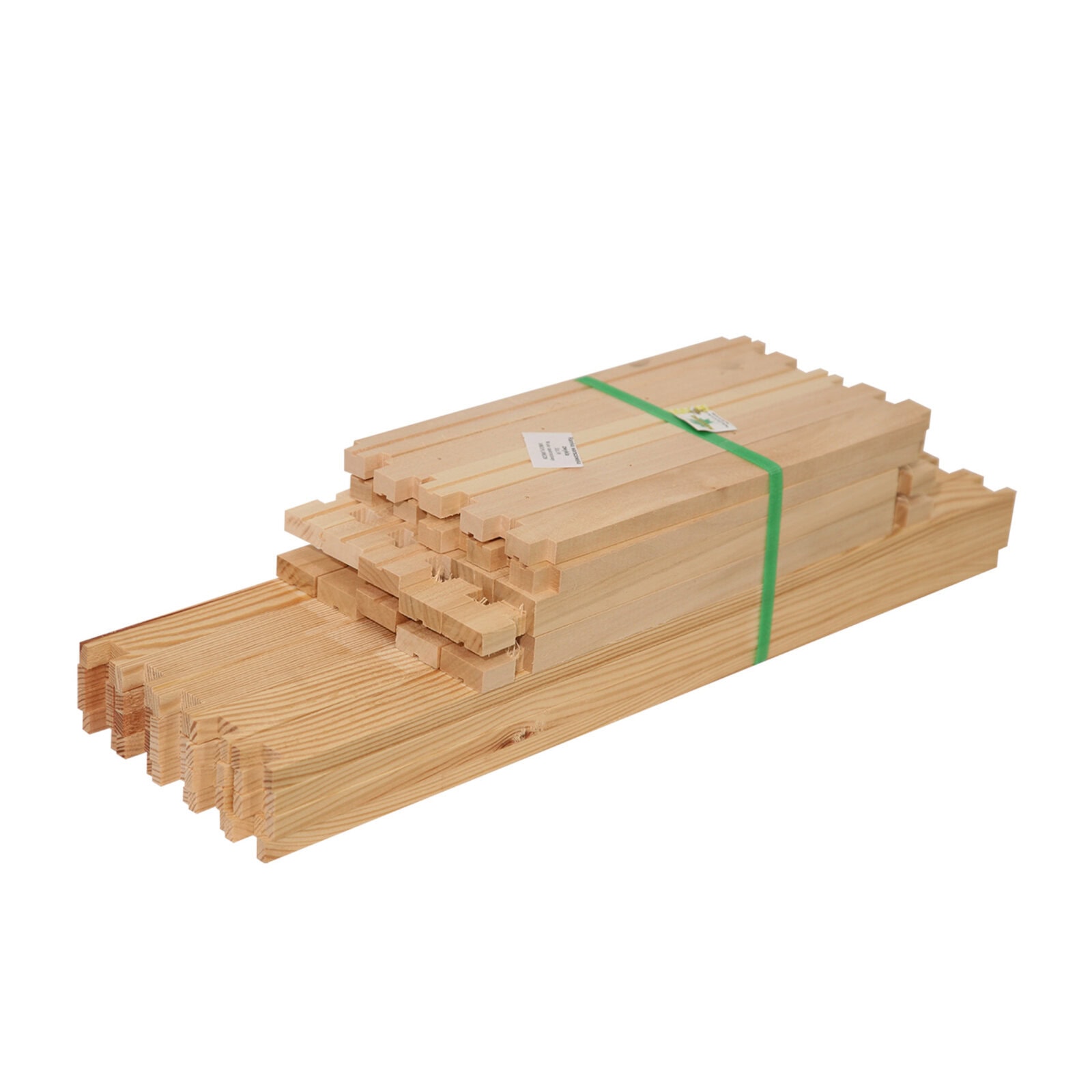 Zestaw dziesięciu klasycznych ramek w standardzie warszawskim zwykłym, wykonanych z solidnego, dobrze sezonowanego drewna. Zapewniają stabilność w ulu, wygodę podczas przeglądów oraz łatwe węzowanie. Idealne do tradycyjnych uli warszawskich, cenione za trwałość i komfort pracy w pasiece.