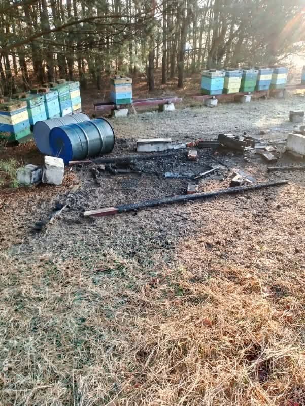 Doszczętnie spalono 7 pni pszczelich oraz kilka zostało uszkodzonych.