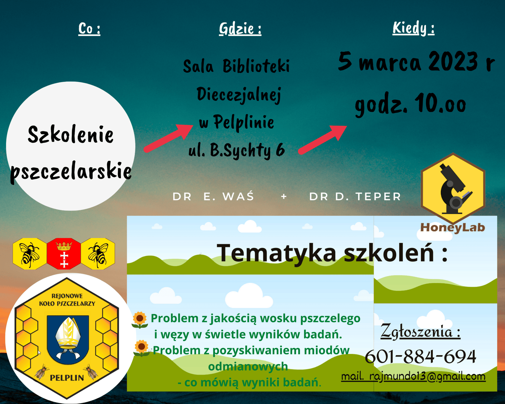 Prosimy zapoznać z tematami szkolenia pszczelarzy w waszym Kole i zachęcić do przyjazdu do Pelplina. Będzie to doskonale i z pożytkiem spędzony czas na wykładach.