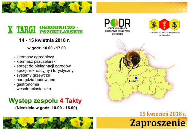 Po raz drugi w terminie kwietniowym, PODR Lubań w porozumieniu z WZP Gdańsk, organizuje targi ogrodniczo pszczelarskie i sympozjum pszczelarskie, na które serdecznie zapraszamy wszystkich pszczelarzy wraz z rodzinami, jak również sympatyków i zwykłych „zjadaczy dobrego polskiego miodu”.